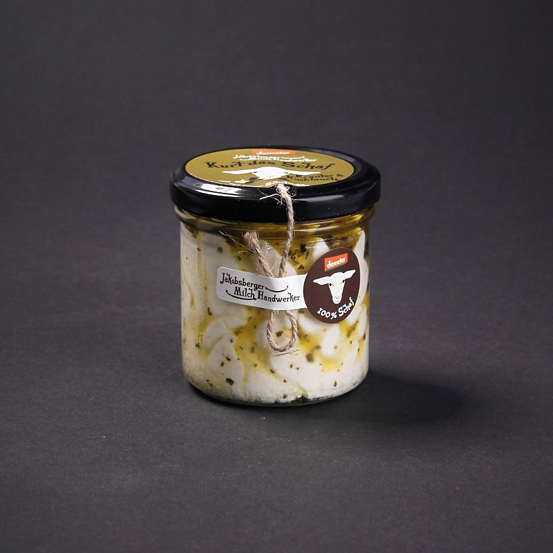 Kurt mit Kräutern und Knoblauch. Der weiße Naturfrischkäse eingelegt in kaltgepresstem demeter Olivenöl, umgeben von einer frischen Kräuter und Knoblauchkomposition. Das einfach Gute muss der Kenner schätzen.