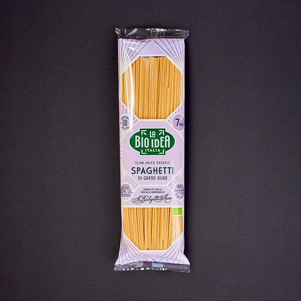 Aus hochwertigem sizilianischen Hartweizen hergestellt und innerhalb von 24 Stunden aus Weizenkorn zu Nudeln verarbeitet. Das Mahlen von Weizen und die Herstellung von Teigwaren erfolgen in einem einzigen Prozess. Wo früher die Spaghetti im Dorf auf Holzregalen getrocknet wurden, wird sie heute in der Fabrik selbst hergestellt. Dies geschieht immer noch sehr langsam bei einer niedrigen Temperatur von 50 ° C bis 65 ° C, so dass Geschmack, Geruch und Nährstoffe erhalten bleiben. Das ist heute traditionelle Pasta "con amore e passione" von La BIO IDEA.