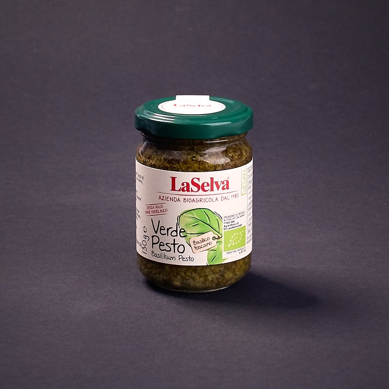 weniger anzeigenVerde Pesto - Basilikum Pesto schmeckt nicht nur auf LaSelva Pasta, sondern auch auf geröstetem Brot, in Gemüsesuppen und Risotti, als Dip zu Rohkost, Kartoffeln sowie zu gekochtem Fleisch und in Salatsaucen.