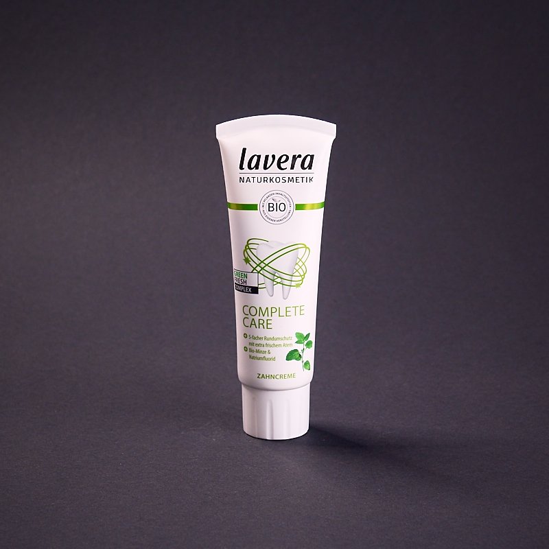 Die lavera Zahncreme Complete Care mit Bio-Minze und Natriumfluorid bietet 5-fachen Rundumschutz*. Die hochwirksame Rezeptur mit Eukalyptus entfaltet eine antibakterielle Wirkung und schenkt besonders frischen Atem.