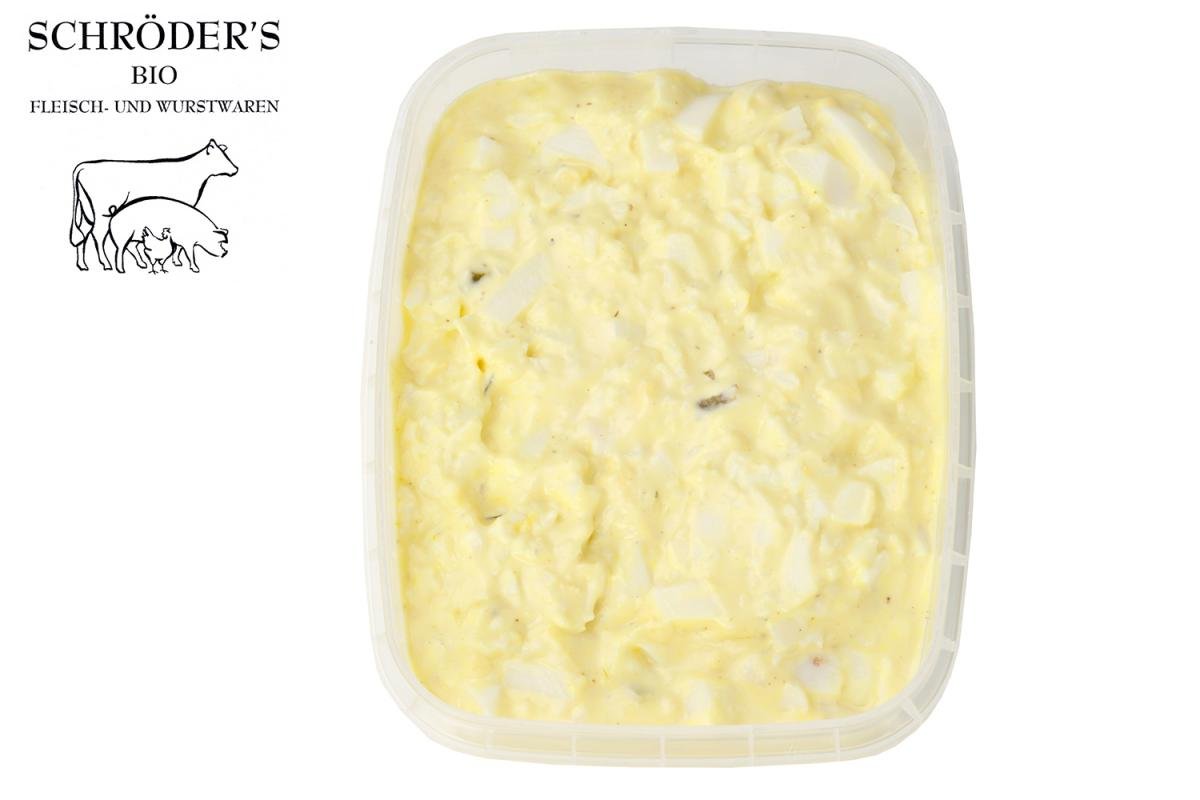 66% EI*, 24% Mayonnaise* (Sonnenblumenöl* 78%, EIGELB* 8%, Wasser, Branntweinessig*, Zucker*, Meersalz, Zitronen*, SENFSAATEN*, Kräuter*, Gewürze*),