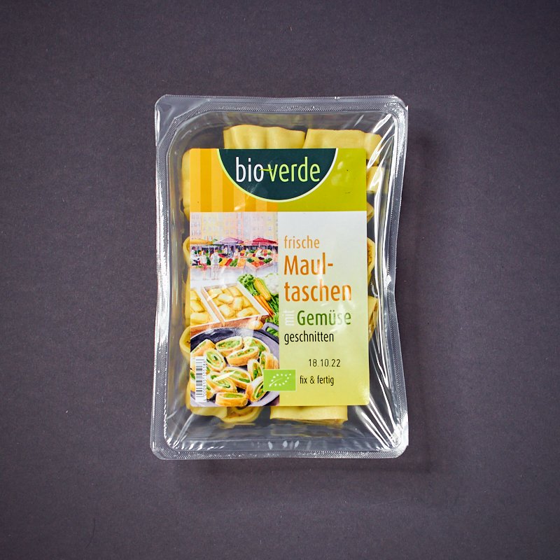 Frische Maultaschen mit Gemüsefüllung. Diese vegetarische Variante ist lecker gefüllt und bereits vorgeschnitten. Die bunte Gemüsefüllung ist nicht nur geschmacklich sondern auch optisch ein "Hingucker".