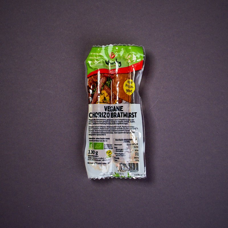 Spanisches Flair bringt unsere Chorizo Bratwurst in die vegetarische Naturkostszene: deftig, pikant, vollmundig! Herzhafter Biss durch eine grobe Konsistenz!