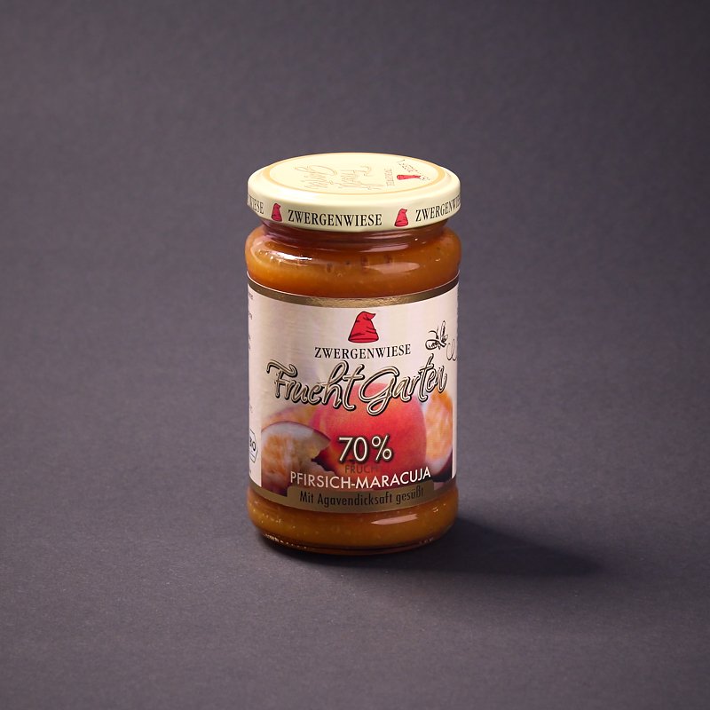 Pfirsiche* 70%, Agavendicksaft*, Maracujasaftkonzentrat* 8 %, Geliermittel Pektine, Verdickungsmittel Johannisbrotkernmehl*.