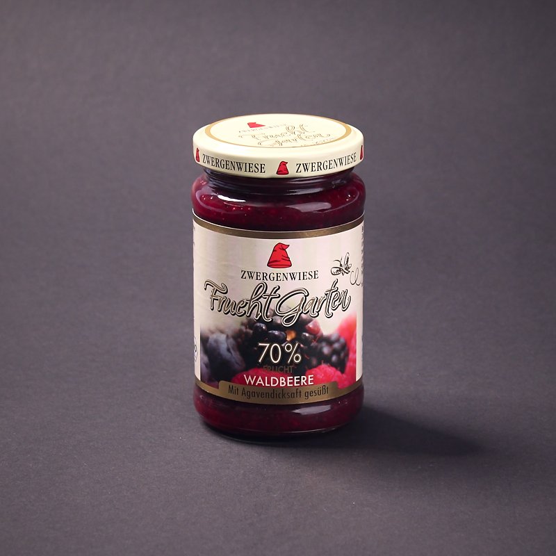 Obst* 70% (in veränderlichen Gewichtsanteilen: Himbeeren*, Brombeeren*, Schwarze Johannisbeeren*, Heidelbeeren*), Agavendicksaft*, Geliermittel Pektine.