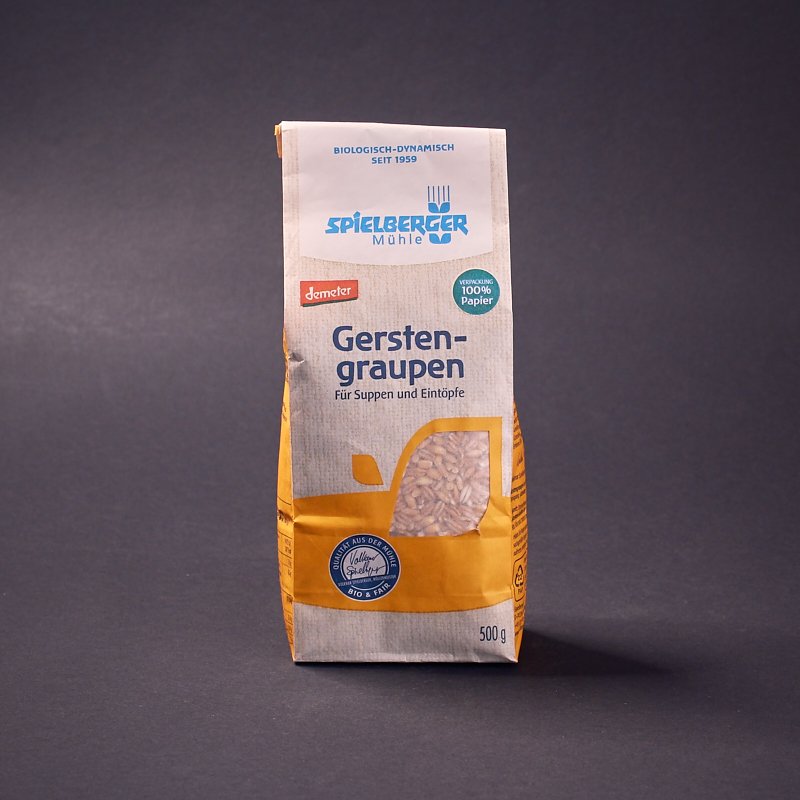 Für Gerstengraupen wird das Gerstenkorn mechanisch zu der typischen Graupenform geschliffen. Der leicht säuerliche Geschmack der Gerstengraupen passt zu deftigen Suppen und Eintöpfen, aber auch zu süßen Aufläufen.