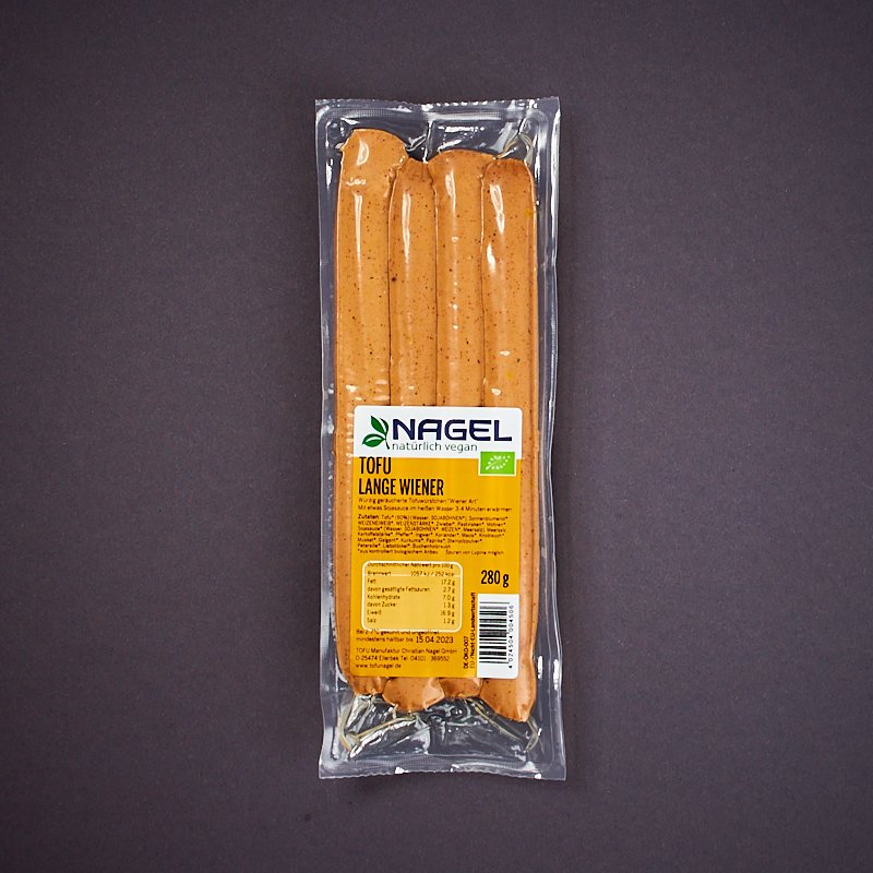 Je länger, je lieber: Die langen Wiener von Tofu Nagel sind langes Ess-Vergnügen. Der würzige Buchenrauch teilt sein Aroma beim Kochen mit der Suppe. Der Schuss Sojasauce gibt den langen Wienern den zusätzlich pikanten Geschmack. Diese Wiener können Sie oft und gern genießen – weil sie wissen, dass Gutes darin ist.