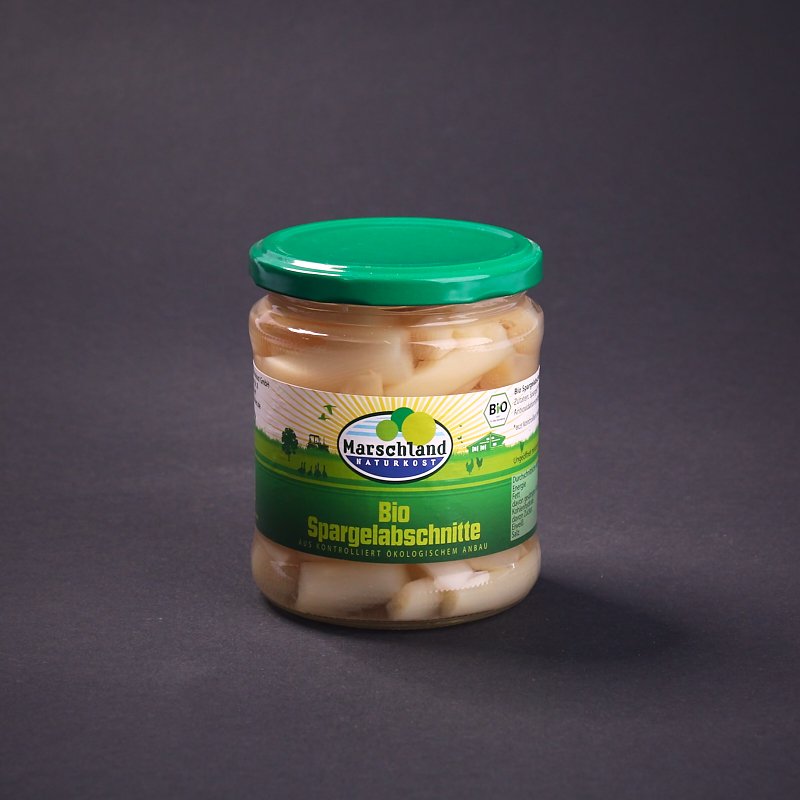 Die gewaschenen und geschälten Spargelabschnitte werden in Gläser gefüllt, mit Aufguss aufgefüllt und durch Sterilisation in einem luftdicht verschlossenen Behältnis haltbar gemacht.