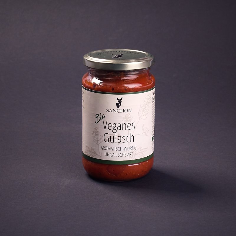 Sanchon veganes und glutenfreies Gulasch ist genau das Richtige, wenn es mal schnell gehen muss. Dieser neuinterpretierte Klassiker besticht durch seine fein abgeschmeckten und aromatischen Gewürze und passt perfekt zu Kartoffeln, Spätzle, Reis oder Gemüse.