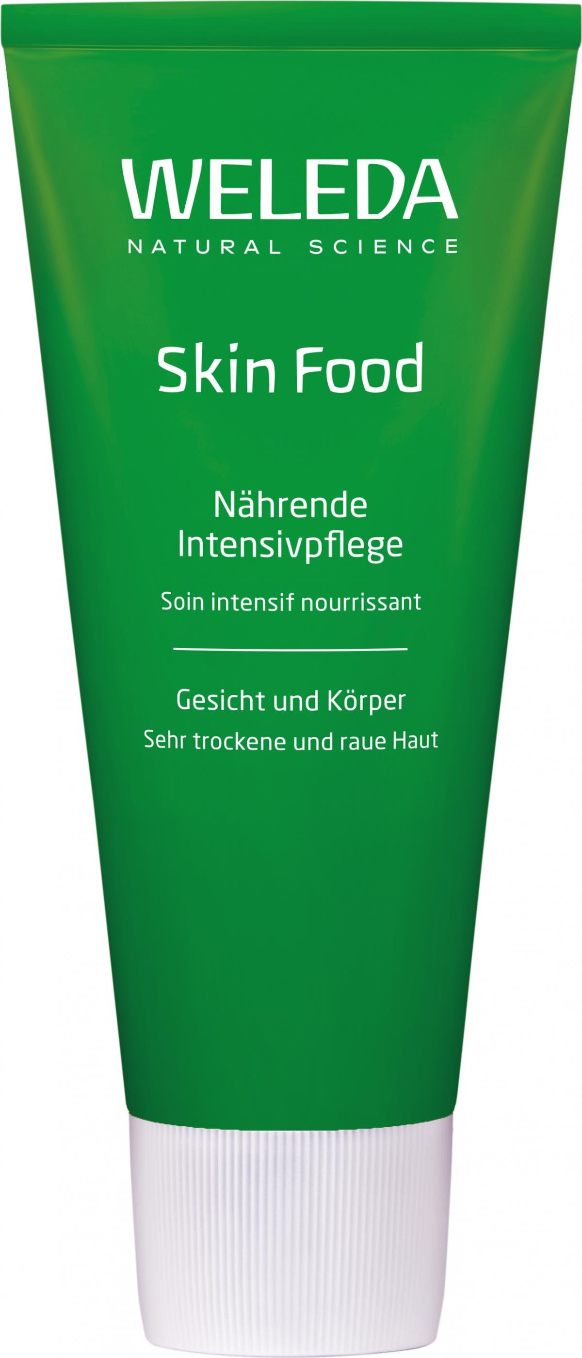 Weleda Skin Food ist eine natürliche Basispflege für die ganze Familie - besonders bei trockener, rauer und spröder Haut. Die wirksame Komposition mit Auszügen aus Stiefmütterchen, Kamillen- und Calendulablüten hat traditionell eine hautberuhigende Wirkung. Schon seit 90 Jahren vertrauen unsere Kunden diesem Klassiker von Weleda - für glatte und zarte Haut. Weleda Skin Food wirkt harmonisierend auf die Hautstruktur und eignet sich auch für besonders trockene Haut, zum Beispiel an Füßen, Händen und Ellenbogen. Information zur Verpackung Wir haben bei Skin Food von der Aluminiumtube auf eine Kunststofftube gewechselt, da vor allem die industrielle Produktion von neuem Aluminium erhebliche Auswirkungen auf die Umwelt hat (für die Tuben können wir kein recyceltes Aluminium verwenden, da dies nicht rein genug wäre). Neu können die Tuben zu 100% recycelt werden und sie bricht nicht mehr. Mit der aktuellen Verpackung konnten wir uns sogar in Sachen Öko-Bilanz viel verbessern. Weitere Informationen Entdecken Sie hier die ganze Skin Food Pflegeserie.