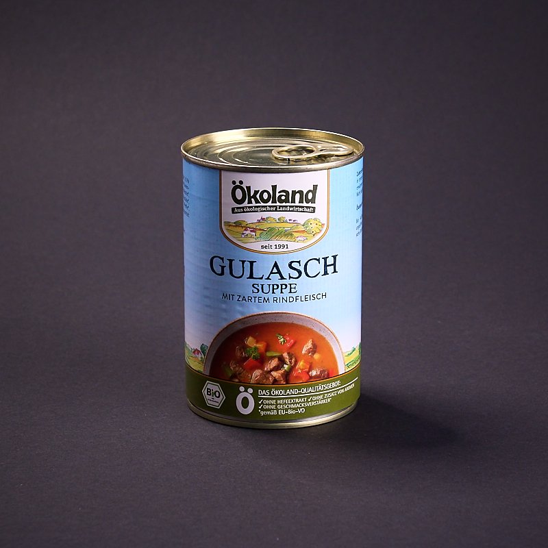 Gulaschsuppe ist ein traditionelles Nationalgericht in Ungarn. Ihren Namen hat sie vom ungarischen Wort Gulyas - was ,,Rinderhirtenfleisch´ bedeutet. Ganz nach dem Vorbild der Magyaren-Küche haben wir die Rezeptur für unsere Ökoland Gulaschsuppe komponiert: Würzige Gemüsepaprika und ein hoher Rindfleischanteil sorgen für den exzellenten Geschmack. Und was das hochwertige Fleisch angeht: Sie können sicher sein, dass unsere Bio-Bauern konsequent für eine artgerechte Haltung und gesunde Fütterung der Tiere sorgen. Die Gulaschsuppe schmeckt übrigens auch hervorragend als Soße zu Reis, Nudeln oder Kartoffeln.