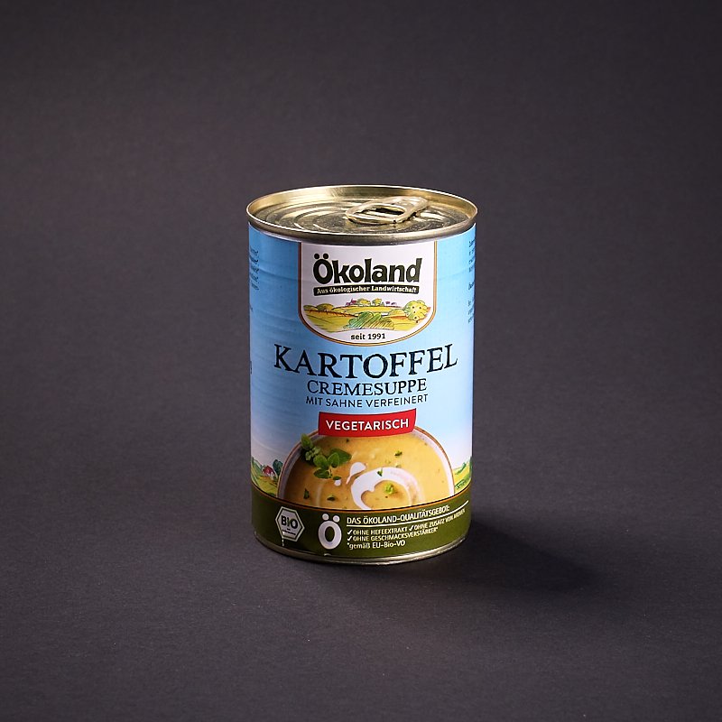 Die als ,,Gold der Inkas´ bekannte Kartoffel wurde in den südamerikanischen Anden bereits vor über 3.000 Jahren angebaut. In der guten deutschen Küche hat die Kartoffel seit Mitte des 17. Jahrhunderts ihren festen Platz gefunden. Als eines der beliebtesten Lebensmittel findet sich die Kartoffel auf fast allen Speisekarten der Welt. Unsere Ökoland Kartoffel Cremesuppe wird nach einem traditionellen Rezept gekocht und mit frischer Sahne und ausgewählten Kräutern verfeinert.