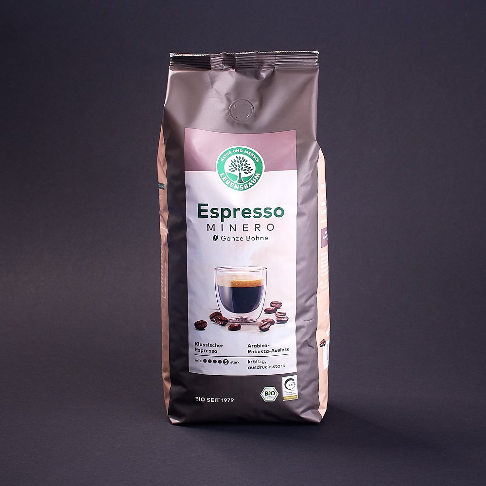 Kräftig, gehaltvoll intensiv und mit satter Crema - für den Minero Espresso verwenden wir Arabica-Bohnen aus dem peruanischen und mexikanischen Hochland sowie Robusta-Bohnen aus Uganda. Natürlich geschützt unter Schattenbäumen reifen die Bio-Kaffees langsam heran und entwickeln so ihr einzigartiges Aroma. Lebensbaum Kaffees werden traditionell unter Schattenbäumen kultiviert. Dies schützt den Boden und die vielfältigen Ökosysteme in den Anbaugebieten. Vor Ort wählen wir die erlesenen Qualitäten aus und überzeugen uns von der exzellenten Arbeit unserer Lieferanten. Ganz im Sinne der Lebensbaum Philosophie bilden langfristige, faire Partnerschaften die Grundlage für einen verantwortungsvollen Umgang mit Natur und Mensch.