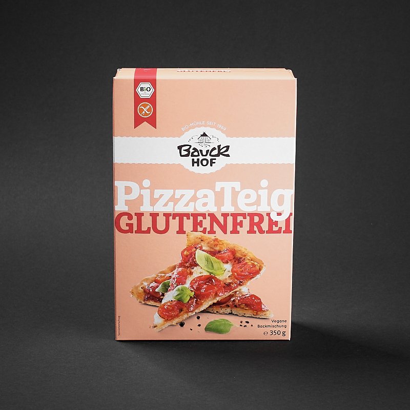 Bauckhof Pizzateig glutenfrei schmeckt wie hausgemacht und gelingt leicht und schnell. Teig vorbereiten und mit Tomatenpüree bestreichen. Belegen Sie Ihre Pizza jetzt nach Belieben, z.B. mit Zwiebeln, Champignons, Mais Paprika, Ananas, Oliven, Brokkoli, Artischocken, Zuchini, Peperoni, Spinat, Kapern, Salami, Schinken, Muscheln, Sardellen, Thunfisch...