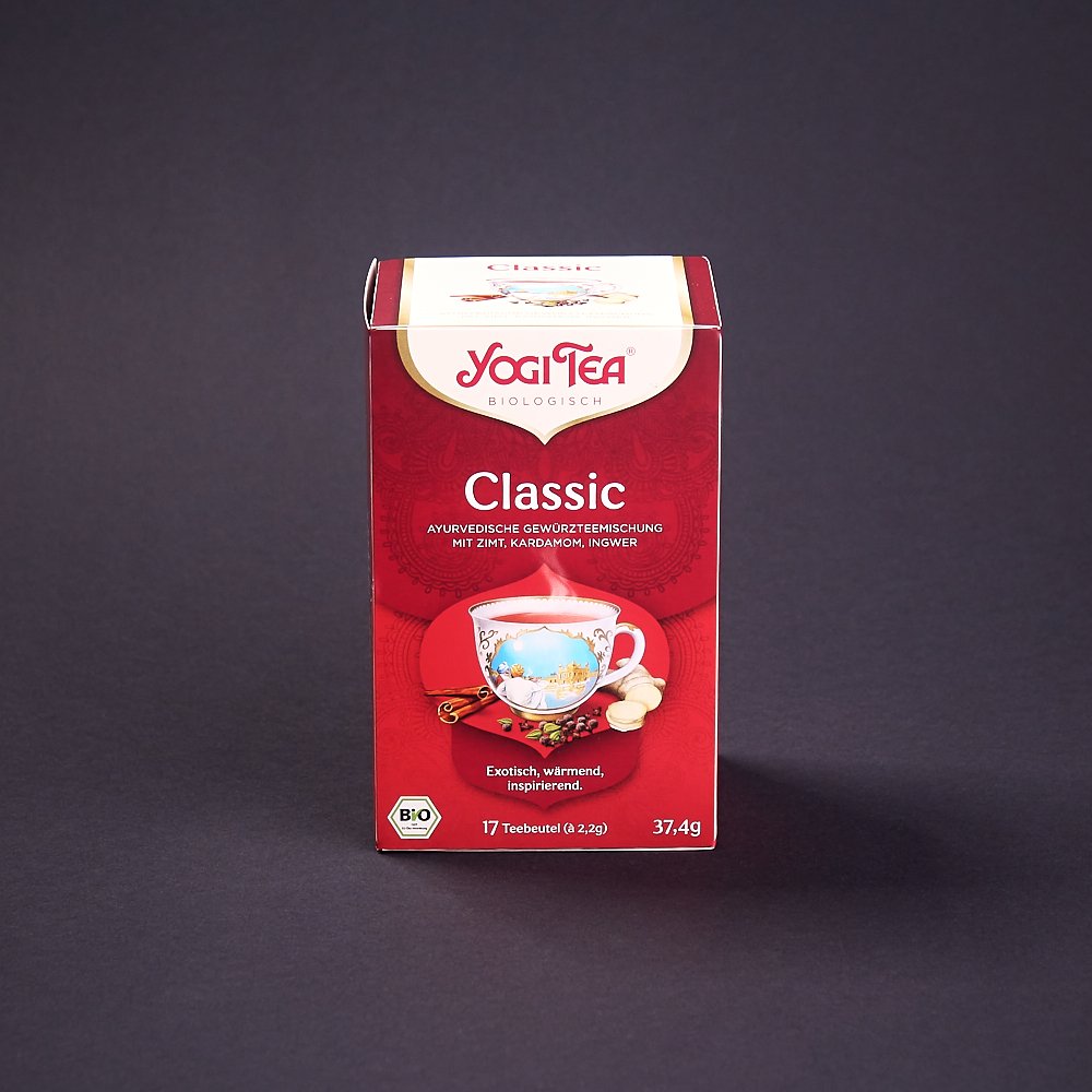 Der Gewürz-Tee Yogi Tea® Classic Bio ist eine wunderbare Mischung aus süßem Zimt, Kardamom, würzigem Ingwer, Nelken und Pfeffer und inspirierte Generationen von Yogis sowie die Marke YOGI TEA® und legte den Grundstein für die Vielfalt unserer ayurvedischen Teemischungen. Am besten gesüßt und mit Milch oder einer veganen Milchvariante genießen.