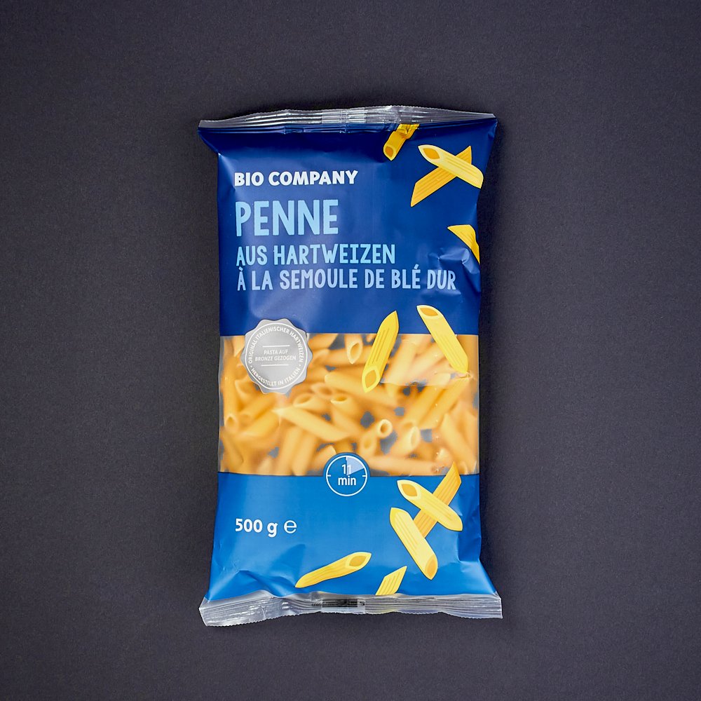 Penne aus Hartweizen-Grieß, traditionell italienisch mit Bronzewalzen hergestellt - dadurch erhält die Pasta eine raue Oberfläche, und Saucen werden besser aufgenommen.