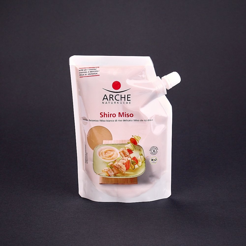 Das milde Bio Reismiso aus geschältem Reis und Sojabohnen ist ein cremiges, süß-salziges Würzmittel. Das Arche Miso ist vegan und glutenfrei. Das Bio Shiro Miso verfeinert Suppen, Pürees, Dressings, Saucen und feines Gemüse. Köstlich auch zum Überbacken oder pur als Brotaufstrich. Arche Shiro Miso in Bio-Qualität hat einen praktischen Schraubverschluss zum einfachen Dosieren. Arche Shiro Miso ist pasteurisiert.