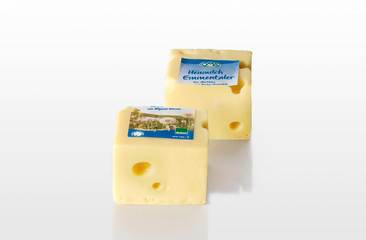 Bunte, kräuterreiche Wiesen und hofeigenes Heu sind die ausgezeichnete Grundlage für die frische und schmackhafte Heumilch, die in der ÖMA Produktion in Kimratshofen zu den köstlichen ÖMA Heumilch-Spezialitäten verarbeitet wird. Die Herstellung von Heumilch ist die ursprünglichste Form der Milchgewinnung. Die Milchkühe genießen im Sommer die bunte Vielfalt unterschiedlicher Gräser und Kräuter der Weiden, im Winter steht ausschließlich Heu und mineralstoffreicher Getreideschrot auf dem Speiseplan. Für den Rohstoff Milch und die daraus gewonnenen Käseschätze bedeutet dies neben der erstklassigen Qualität, ein großer Reichtum an besonders wertvollen Inhaltsstoffen sowie ein unverfälschter, reiner Geschmack. In der Kimratshofer Käserei hat die Herstellung von Emmentaler Tradition. Langjährige Erfahrung, handwerkliches Geschick und wertvolle Heumilch garantieren mit dem ÖMA HeuEmmentaler Käsegenuss allererster Güte. Für die interessierten Kunden & Käseliebhaber gibt es Hintergrundinformationen und -geschichten rund um den Käse, die Landwirte und die Molkerei. Alles zusammengefasst in einem ÖMA Partnerporträt. Sanft geschwungene Hügel, saftig grüne Wiesen und das typische Braunvieh prägen das Landschaftsbild rund um die ÖMA Produktion in Kimratshofen im bayerischen Allgäu. Hier blickt man auf eine lange Tradition in der Milchverarbeitung zurück, deren Grundstein im Jahre 1960 mit der Gründung der Milchverwertung Kimratshofen-Frauenzell gelegt wurde. Durch die enge genossenschaftliche Verflechtung mit den Lieferlandwirten besteht eine tiefe Verwurzelung und Verbund