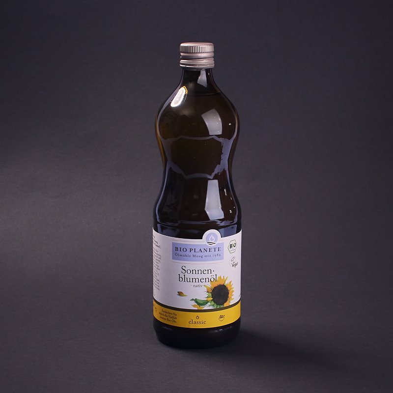 Erntefrische Bio-Sonnenblumenkerne, leicht angeschält und einmal kalt gepresst, ergeben ein naturbelassenes, mildes Öl mit sanft-gelber Färbung - reich an Vitamin E.