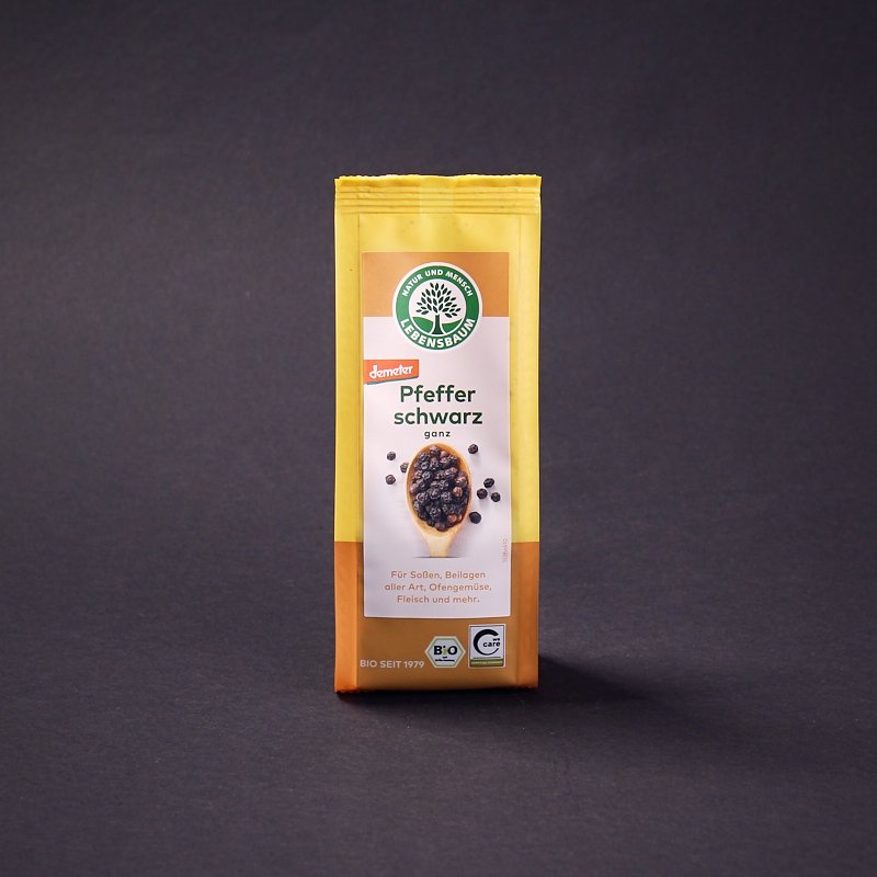 Schwarzer Pfeffer schmeckt fruchtig-scharf. Die Beeren dieser Schlingpflanze werden noch vor der Reife von Hand gepflückt und dann sonnengetrocknet, wodurch sich die schwarze Farbe einstellt. Schwarzer Pfeffer verleiht allen Speisen und Gerichten eine pikante Note.